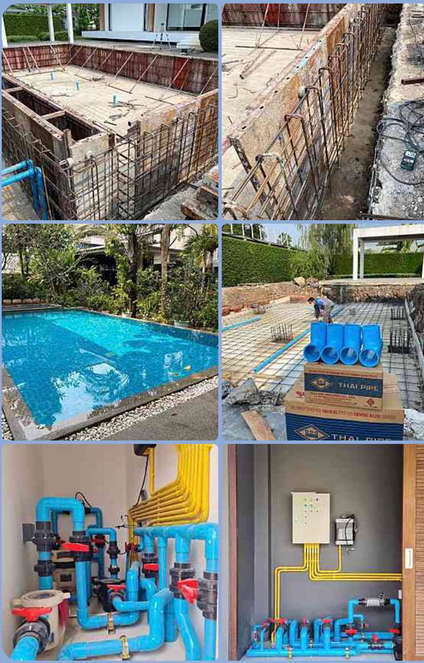 รับเหมาสร้างสระว่ายน้ำ สระไฟเบอร์กลาส สระคอนกรีต ระบบกรองน้ำบางขันหมาก