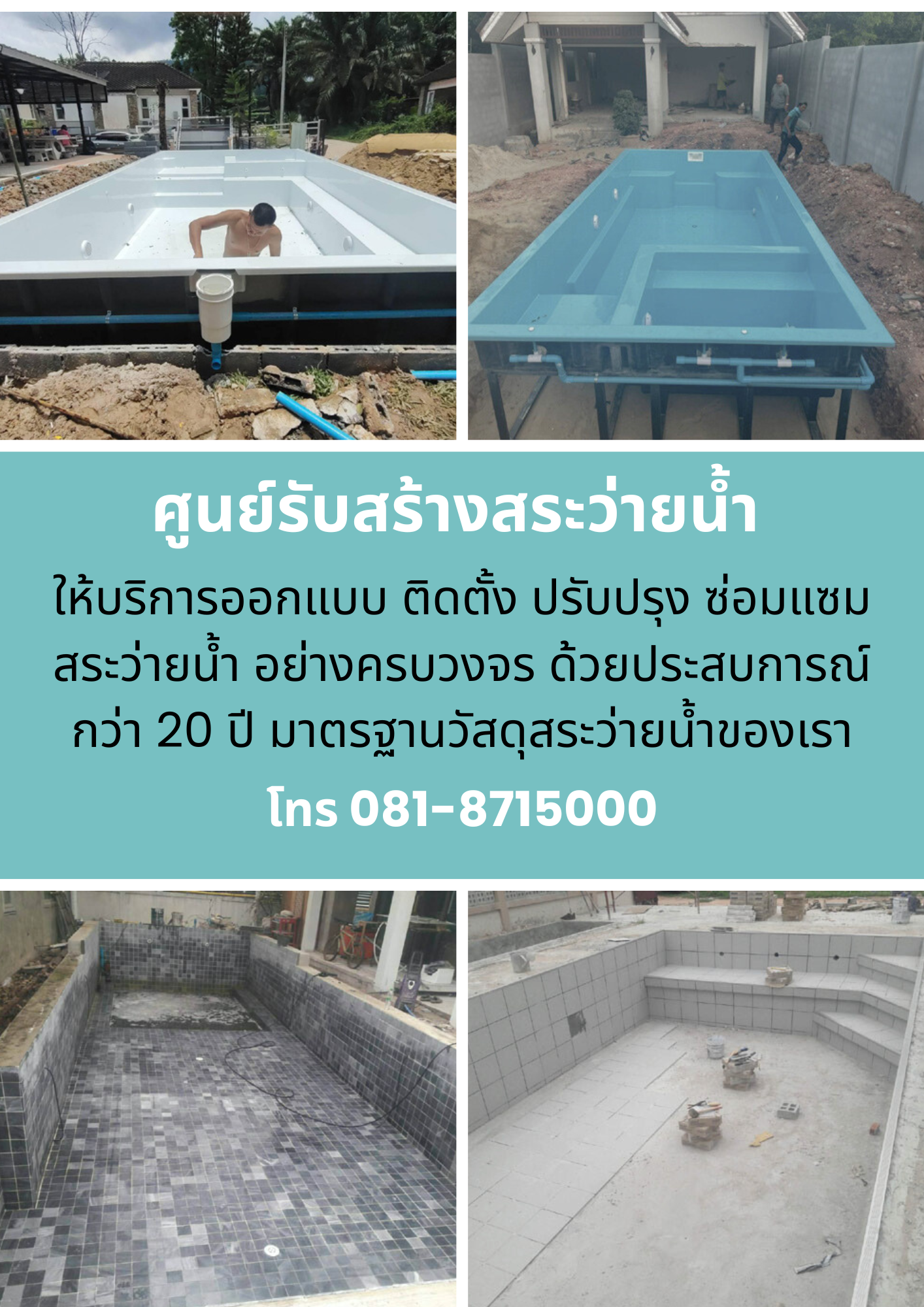 รับเหมาสร้างสระว่ายน้ำ สระไฟเบอร์กลาส สระคอนกรีต ระบบกรองน้ำงิ้วราย
